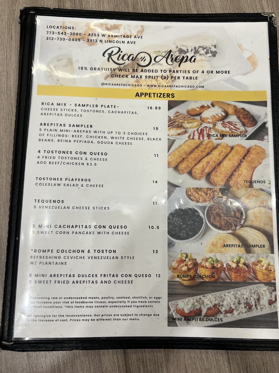 Rica Arepa ARMITAGE Venezuelan Restaurant Menu (Update 2025)